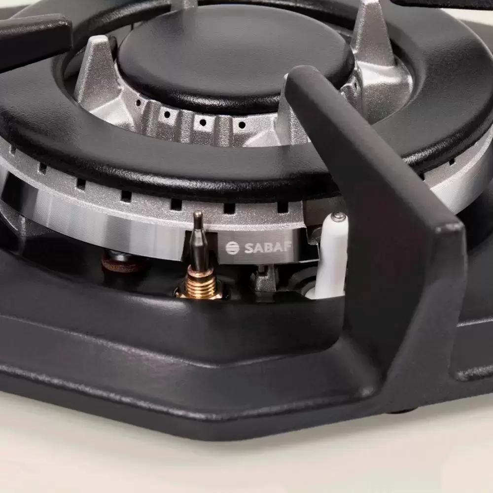 Рабочая поверхность плиты выполнена из жаропрочного закаленного стекла толщиной 8 мм, а четыре конфорки SABAF выглядят не только эффектно за счет своих матовых крышек, но и отличаются надежностью и долговечностью.