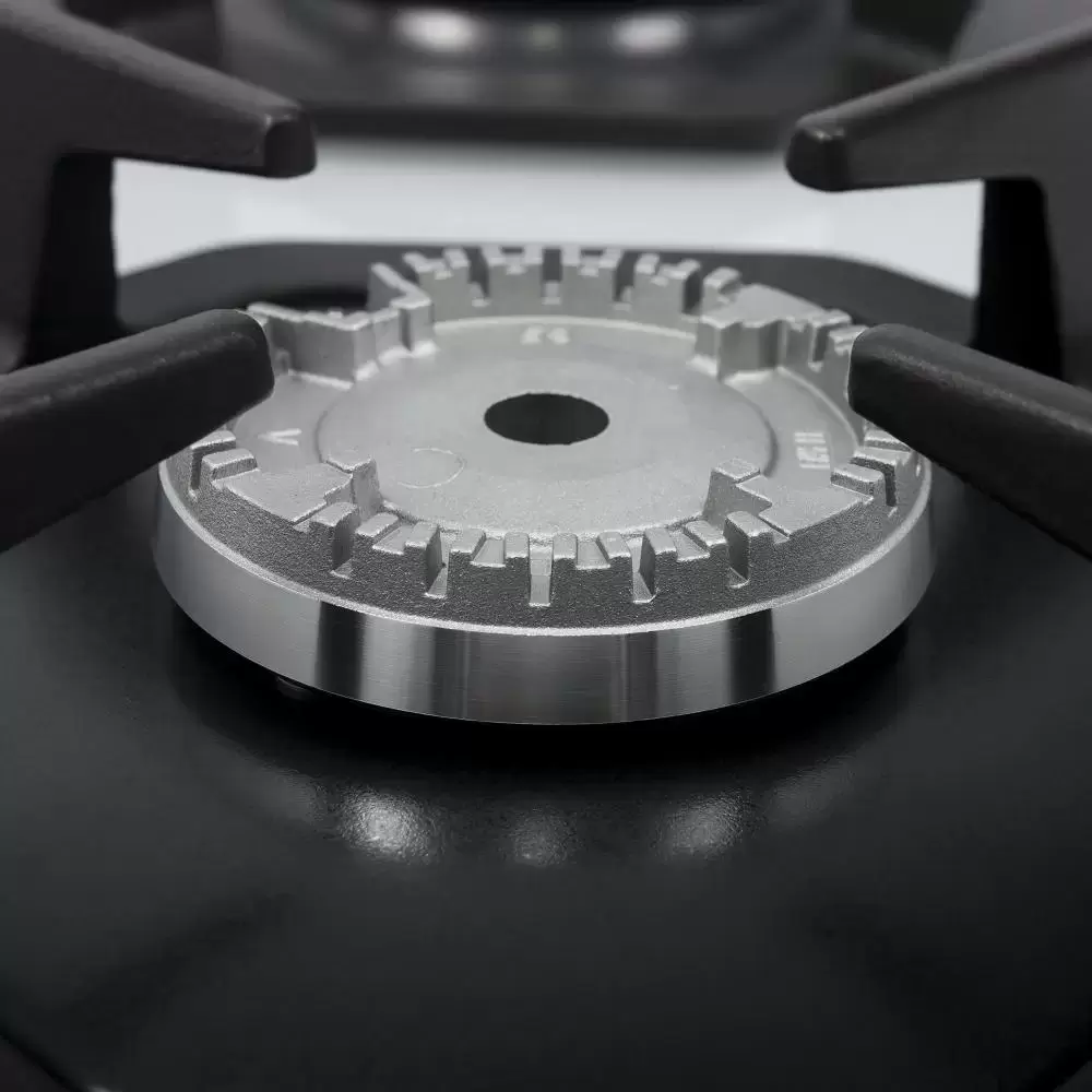 Итальянские конфорки SABAF с матовыми крышками выглядят не только стильно и современно, но так же благодаря системе электроподжига абсолютно безопасны в эксплуатации. Система газ-контроля отключает конфорку, если газ в ней тухнет, а сами горелки спроектированы так, чтобы огонь не перегревал ручки управления и решетки во время приготовления пищи.