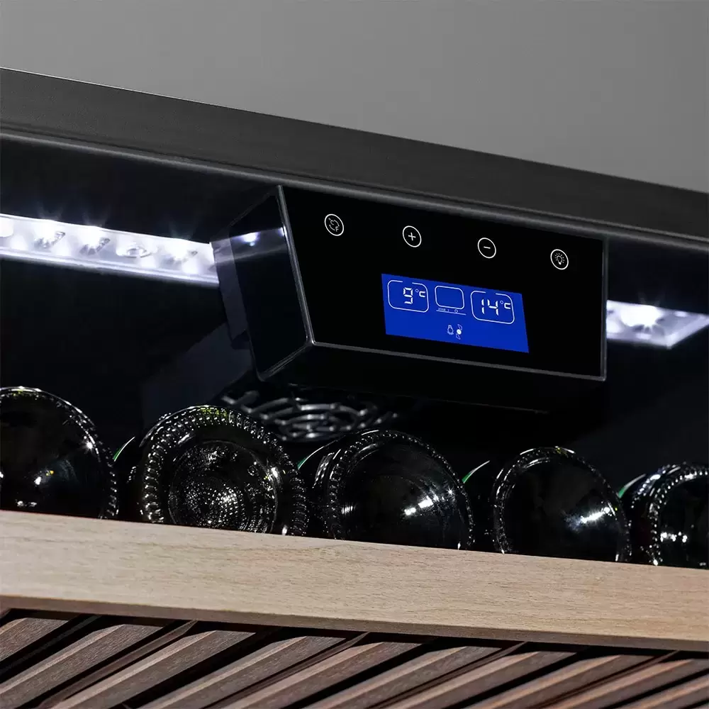 Винный шкаф Meyvel MV22-KSB1 — компактная модель встраиваемого типа. Благодаря своим небольшим габаритам прибор можно установить даже маленьких помещениях. Внутренний объем позволяет вместить до 22 бутылок стандартного объема (0,75литра). Панель управления располагается внутри. Она представлена сенсорными кнопками и информационным дисплеем. Настройка происходит быстро и просто, будет понятна для пользователей любого возраста. Прибор интегрируется в мебельный гарнитур, что позволяет вписать его гармонично в любой конструктивное или дизайнерское решение. Стеклянная дверь оборудована защитой от ультрафиолетового излучения, что особенно важно при хранении винных напитков. Винный шкаф Мейвел MV22-KSB1 работает тихо и без вибраций, поэтому может быть установлен даже в помещении со спальным местом.