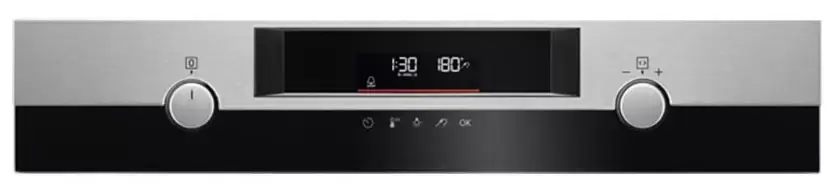 Особенности дизайна и внешней панели управления — также важный пункт при выборе духовки на кухню. В данной модели нужно обратить внимание на цвет — нержавеющая сталь, Электронная панель управления позволяет быстро разобраться в настройке программ и не требует чрезмерных усилий.