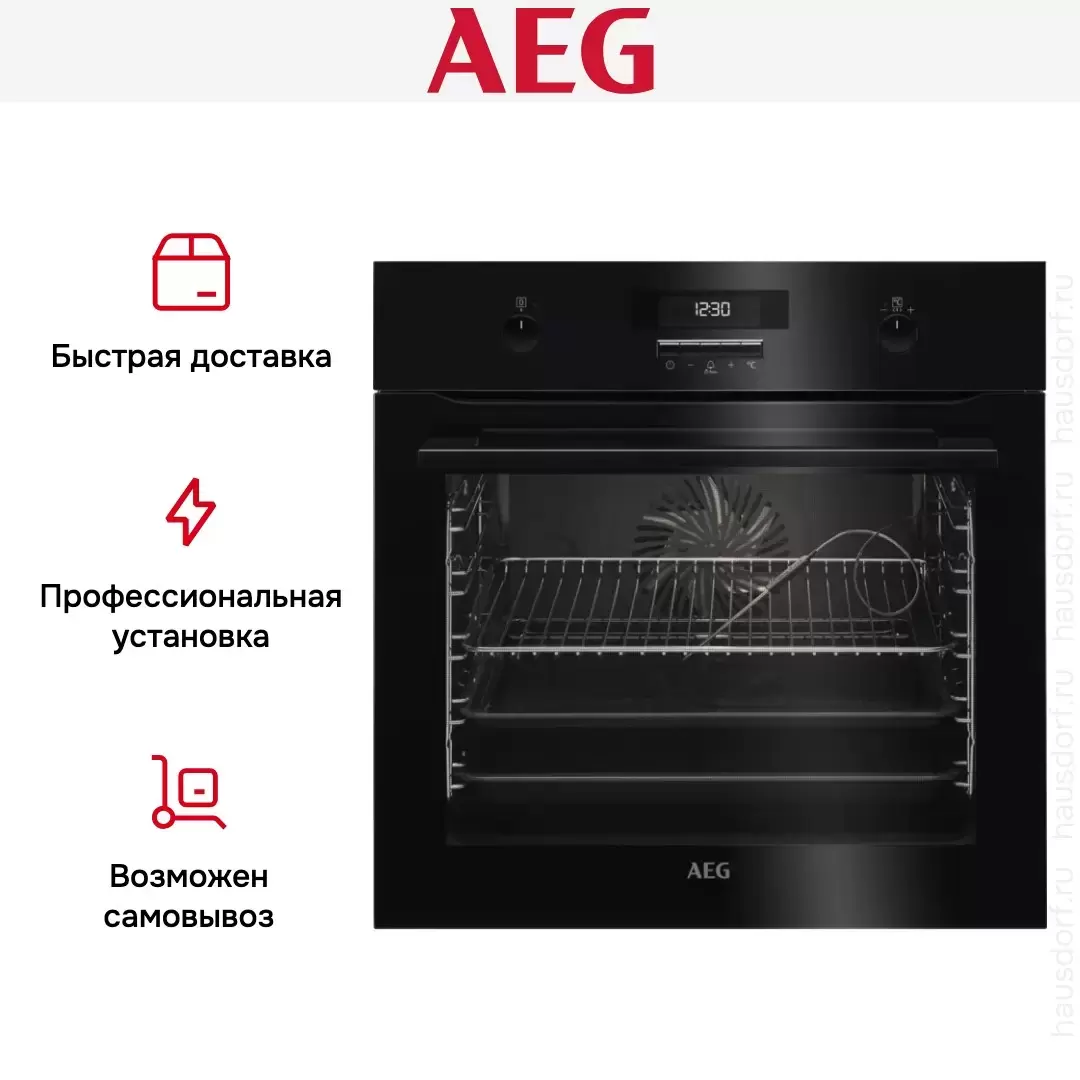 AEG BCR542350B — практичный духовой шкаф с системой каталитической очистки. Модель поддерживает 10 рабочих режимов, среди которых гриллирование, конвекция и разморозка. Встроенный таймер позволяет задать время приготовления того или иного блюда. Для измерения температуры внутри продукта предусмотрен термощуп.