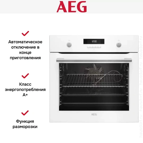 AEG BCR542350W — независимая модель с грилем и конвекцией. Система Hot Air обеспечивает равномерную циркуляцию горячего воздуха по всему объему рабочей камеры духовки. Встроенный доводчик дверцы служит ее мягкому и бесшумному закрыванию. Защитная блокировка панели управления исключает возможность случайного включения прибора.