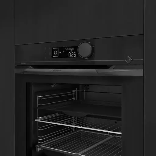 Особенности дизайна и внешней панели управления — также важный пункт при выборе духовки на кухню. В данной модели нужно обратить внимание на цвет — черный, охлаждение двери, чтобы поверхность и мебель вокруг не нагревались.