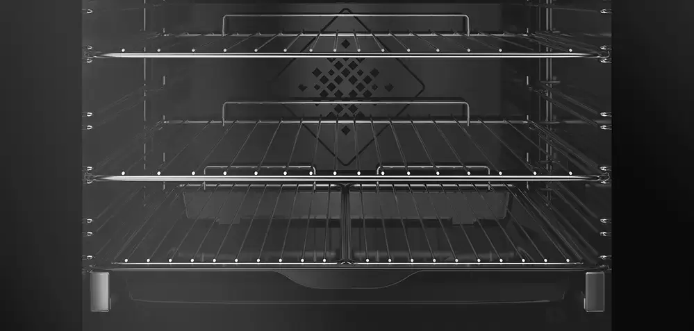 Особенности дизайна и внешней панели управления — также важный пункт при выборе духовки на кухню. В данной модели нужно обратить внимание на цвет — черный, охлаждение двери, чтобы поверхность и мебель вокруг не нагревались.