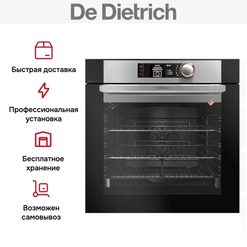 Готовьте свои лучшие блюда и пробуйте новые рецепты с духовым шкафом De Dietrich DOP8574X! Стандартные размеры и большой объем внутренней камеры — выбор тех, кто много готовит для семьи или частых праздничных встреч с друзьями. Желательно заранее продумать расположение такой модели в кухонном гарнитуре.