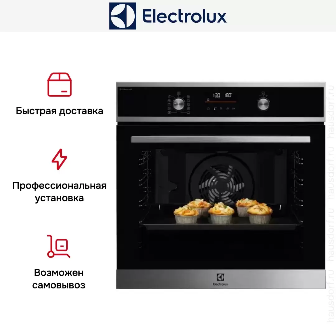Готовьте свои лучшие блюда и пробуйте новые рецепты с духовым шкафом Electrolux EOD6P77X! Стандартные размеры и большой объем внутренней камеры — выбор тех, кто много готовит для семьи или частых праздничных встреч с друзьями. Желательно заранее продумать расположение такой модели в кухонном гарнитуре.