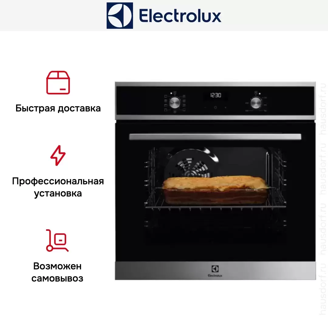Готовьте свои лучшие блюда и пробуйте новые рецепты с духовым шкафом Electrolux OEF 5E50 X! Стандартные размеры и большой объем внутренней камеры — выбор тех, кто много готовит для семьи или частых праздничных встреч с друзьями. Желательно заранее продумать расположение такой модели в кухонном гарнитуре.