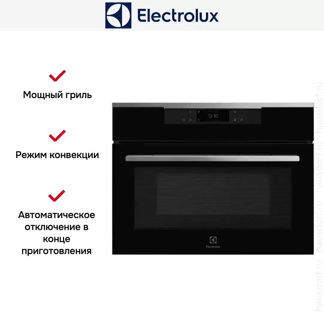 Количество режимов работы в духовом шкафу Электролюкс: 22. В число доступных программ входят: классический нагрев, верхний нагрев, нижний нагрев, конвекция, приготовление с помощью микроволн, гриль для создания хрустящей корочки, пицца, сушка для овощей и фруктов, медленное приготовление при низкой температуре, и другие. Помимо основных программ воспользуйтесь специальными возможностями этого прибора: размораживанием продуктов, чтобы сократить время на подготовку; подогревом посуды для настоящей ресторанной сервировки; быстрым разогревом для ускорения работы; и другими. Тип гриля в этой модели — электрический.