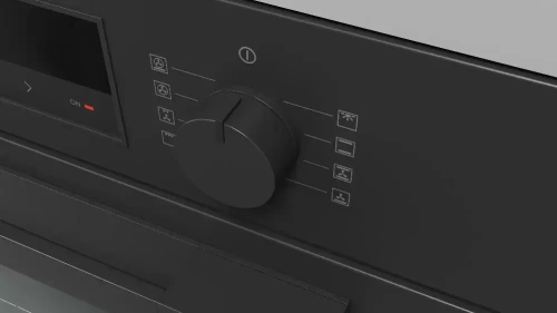 Особенности дизайна и внешней панели управления — также важный пункт при выборе духовки на кухню. В данной модели нужно обратить внимание на цвет — матовый черный, Электронная панель управления позволяет быстро разобраться в настройке программ и не требует чрезмерных усилий.