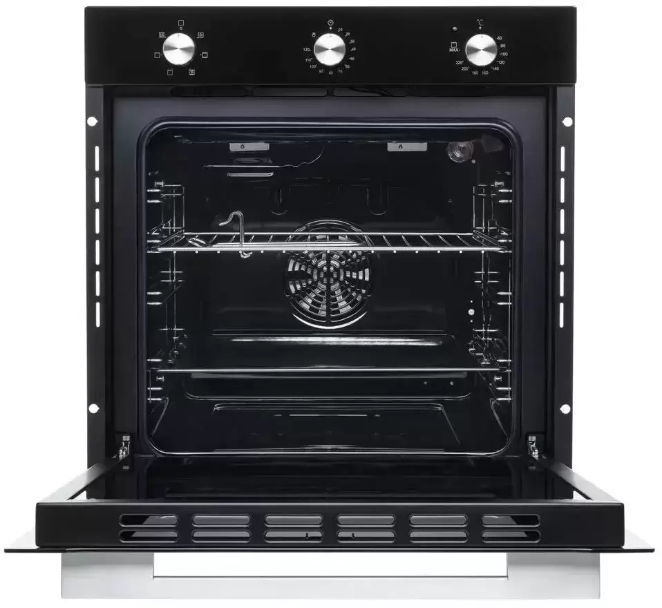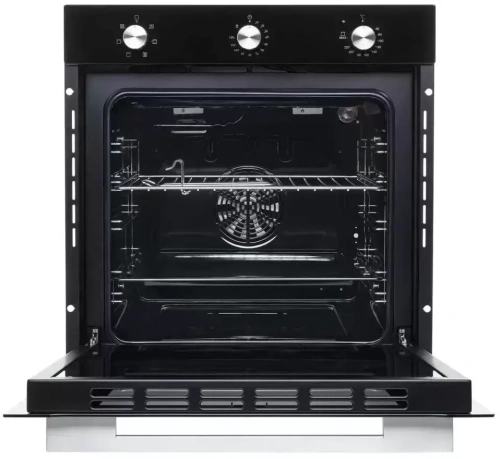 Стандартный размер позволяет устанавливать устройство в уже готовые кухонные гарнитуры. Специальные функции, защищающие прибор, не нагревают мебель, что повышает уровень безопасности. Духовка представлена в черном исполнении. Глянцевая поверхность отличается легкостью в уходе при помощи обычных моющих средств. Отсутствие сенсорного управления минимизирует появления отпечатков пальцев. Специальные графические обозначения около каждого регулятора позволяют быстро сориентироваться в настройках.