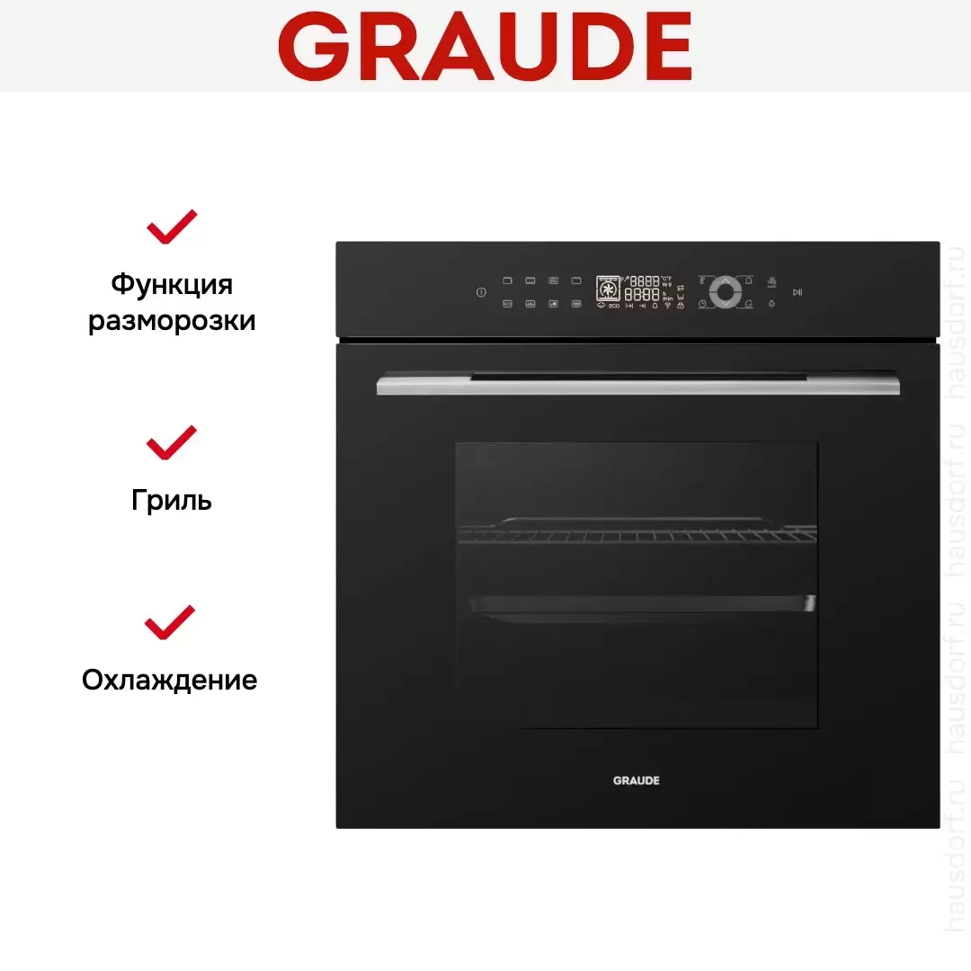 Духовой шкаф Graude можно встроить под столешницу или в колонну. Расширяйте свои кулинарные возможности благодаря специальным режимам: для пиццы, для ферментации, Multi-Cooking, функциям размораживания и подогрева. Благодаря каталитической очистке вы быстро избавляетесь от жира и частичек еды в камере. Поверхность из черного стекла выглядит стильно и современно. Разводы и отпечатки от пальцев быстро устраняются при помощи привычным моющих средств. О правилах ухода и обслуживания за прибором подробно написано в инструкции, которая входит в комплект поставки.