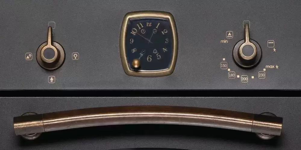 Korting OGG 741 CRN — встраиваемый газовый духовой шкаф с независимым подключением из коллекции Calabria. Духовка объемом 67 литров оснащена четырьмя режимами приготовления, в том числе при помощи конвекции и газового гриля. Модель в стиле ретро с фасадом цвета антрацит, фигурным стеклом в дверце, бронзовой фурнитурой и аналоговыми часами Frank Muller на панели управления может быть установлена в кухне классического или деревенского стиля. Выбрать температуру и длительность приготовления помогут два поворотных переключателя. Модель оснащена таймером с подачей звукового сигнала или автоматическим отключением в конце приготовления.