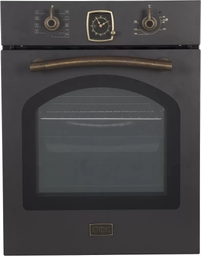 Korting OKB 4941 CRN — электрический духовой шкаф в ретро-стиле. Выбор режима нагрева и температуры приготовления осуществляется при помощи поворотных переключателей, выполненных в бронзовом цвете. Для установки времени работы духовки предусмотрен аналоговый таймер. Дополнительный комфорт и безопасность при эксплуатации устройства обеспечивают телескопические направляющие, которые надежно удерживают противень на одном из нескольких уровней.