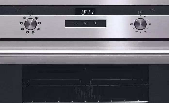 Легкую очистку поверхности камеры обеспечивает специальная кислостойкая эмаль Metallic Grey. Двухуровневые телескопические направляющие позволяют безопасно извлекать горячие противни из камеры и оставлять их остывать. В комплект входят хромированная решетка и два противня для выпечки. Галогенная подсветка позволяет следить за ходом приготовления.