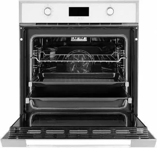 Особенности дизайна и внешней панели управления — также важный пункт при выборе духовки на кухню. В данной модели нужно обратить внимание на цвет — белый,