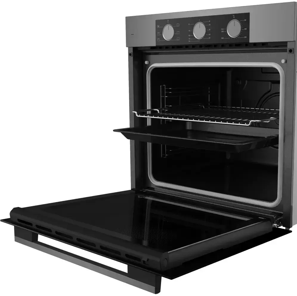 Особенности дизайна и внешней панели управления — также важный пункт при выборе духовки на кухню. В данной модели нужно обратить внимание на цвет — графит, Механическая панель управления позволяет быстро разобраться в настройке программ и не требует чрезмерных усилий.