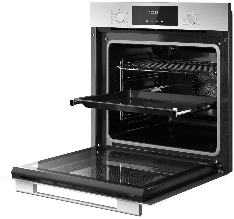 Особенности дизайна и внешней панели управления — также важный пункт при выборе духовки на кухню. В данной модели нужно обратить внимание на цвет — черный/нержавеющая сталь,