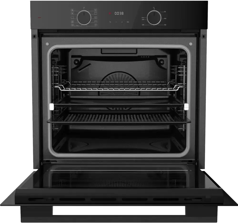 Особенности дизайна и внешней панели управления — также важный пункт при выборе духовки на кухню. В данной модели нужно обратить внимание на цвет — черный,