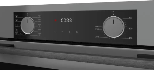 Особенности дизайна и внешней панели управления — также важный пункт при выборе духовки на кухню. В данной модели нужно обратить внимание на цвет — графит,