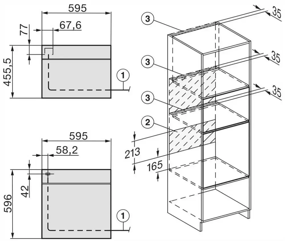 | Размеры ниши для встраивания (ВхШхГ) (см) | 59-59.5х56-56.8х55 | |