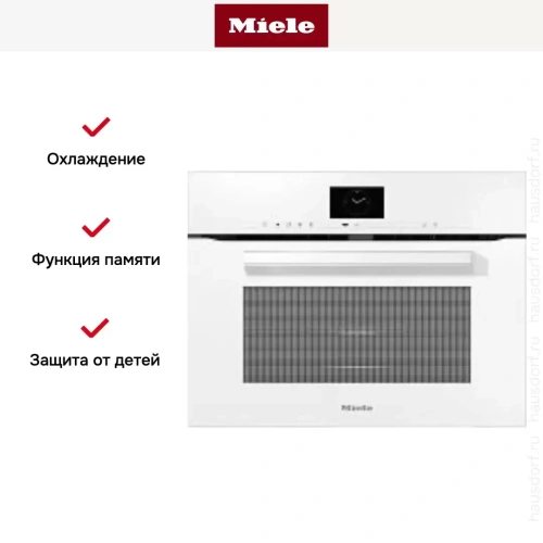 Модель высотой 45 см и стандартной шириной 60 см может устанавливаться в колонну или тумбу. Устройство из дизайн-серии VitroLine выполнено в оригинальном цвете «бриллиантовый белый», в откидную дверцу вставлено стекло легкой очистки CleanGlass. Камера изнутри покрыта эмалью PerfectClean, с которой без труда удаляются любые загрязнения. Сенсорное управление с текстовым дисплеем интуитивно понятно и удобно: для выбора режима работы достаточно одного касания.
