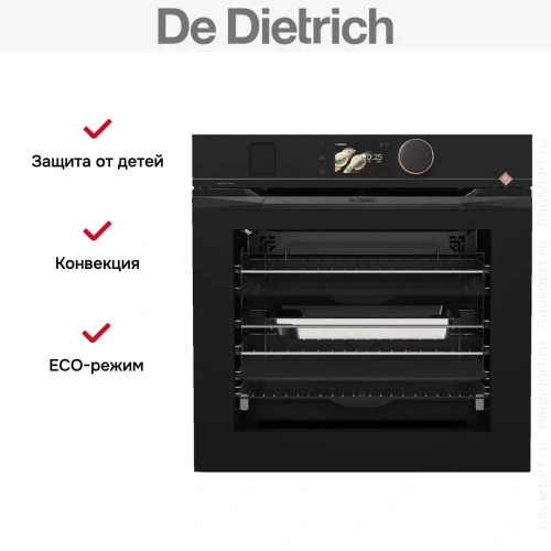 Готовьте свои лучшие блюда и пробуйте новые рецепты с духовым шкафом De Dietrich DOR4747H! Стандартные размеры и большой объем внутренней камеры — выбор тех, кто много готовит для семьи или частых праздничных встреч с друзьями. Желательно заранее продумать расположение такой модели в кухонном гарнитуре.