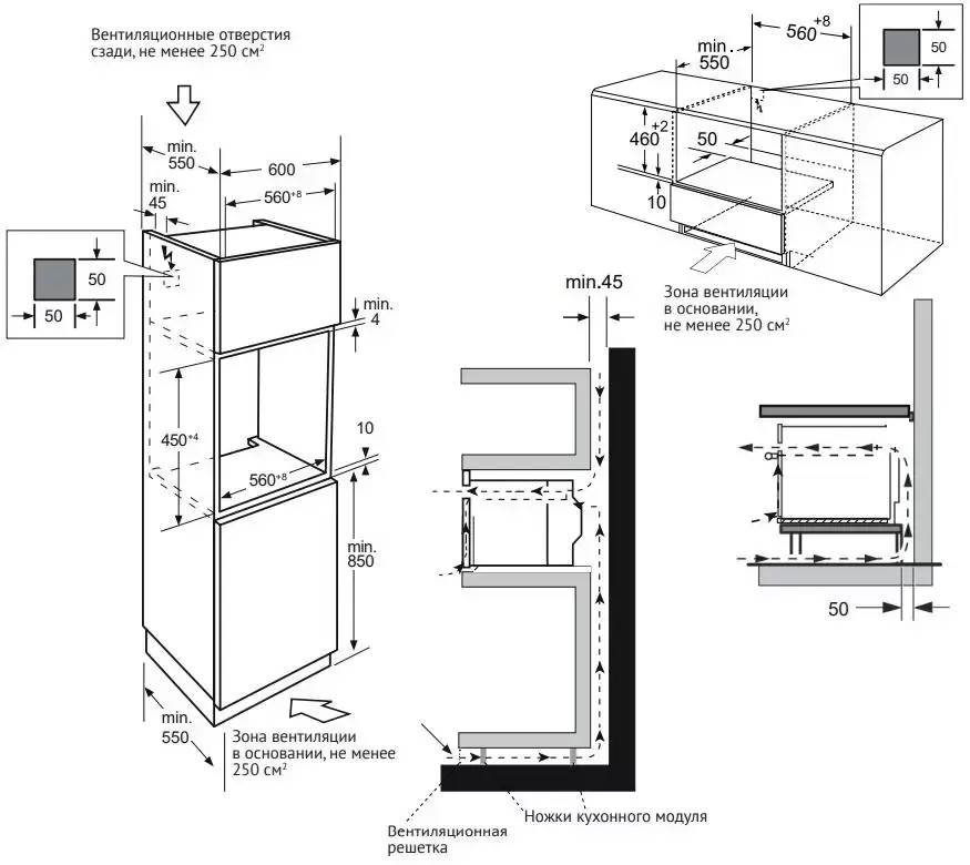 | Размеры ниши для встраивания (ВхШхГ) (см) | 45-45.4х56-56.8х55 | |