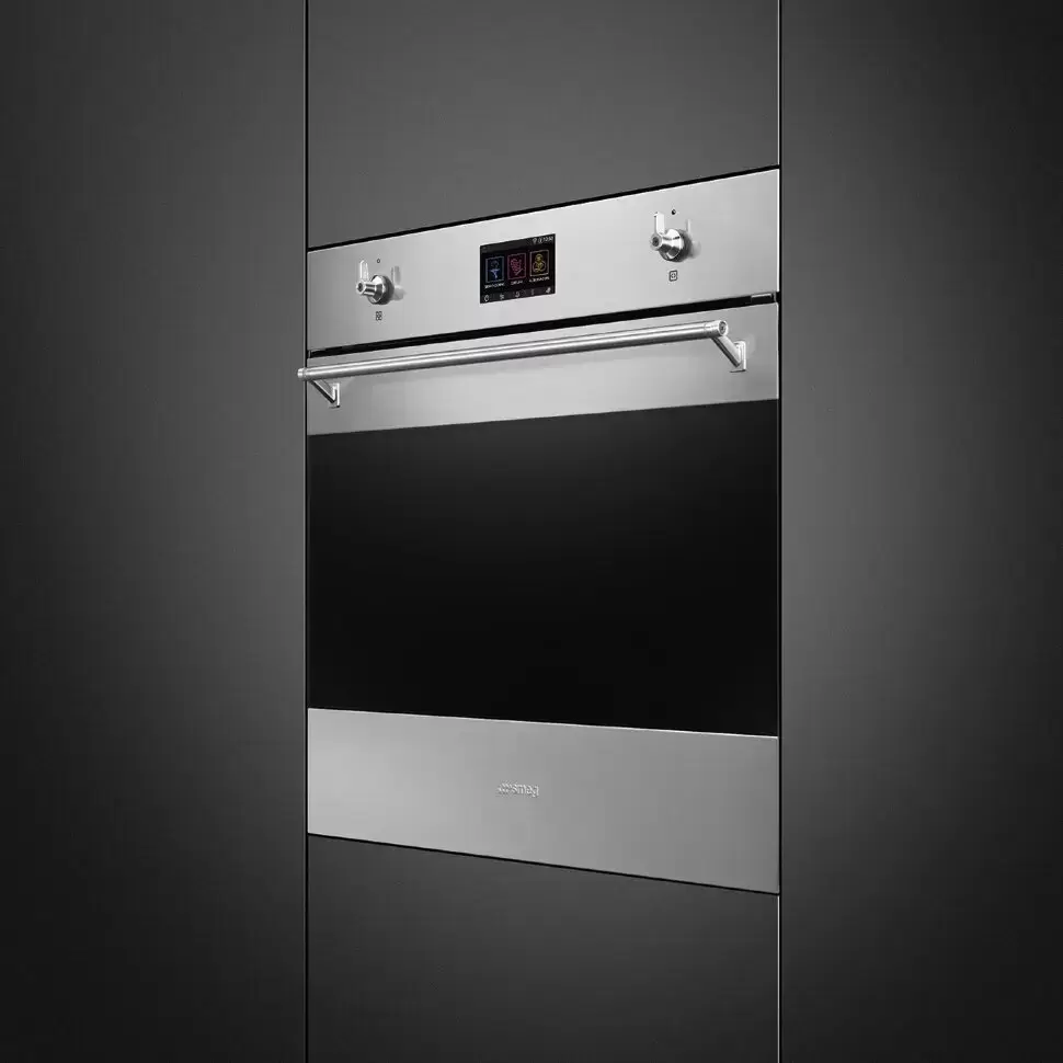 Готовьте свои лучшие блюда и пробуйте новые рецепты с духовым шкафом Smeg SO6303APX! Стандартные размеры и большой объем внутренней камеры — выбор тех, кто много готовит для семьи или частых праздничных встреч с друзьями. Желательно заранее продумать расположение такой модели в кухонном гарнитуре.