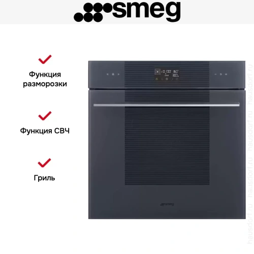 Готовьте свои лучшие блюда и пробуйте новые рецепты с духовым шкафом Smeg SO6102M2G! Стандартные размеры и большой объем внутренней камеры — выбор тех, кто много готовит для семьи или частых праздничных встреч с друзьями. Желательно заранее продумать расположение такой модели в кухонном гарнитуре.