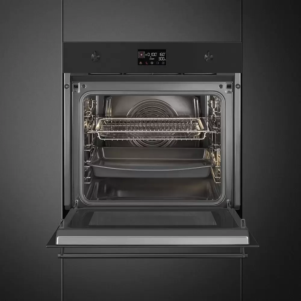 Независимая электрическая духовка Smeg SO6302M2N представляет собой современное решение для кухни, сочетающее в себе элегантный дизайн и высокую функциональность. Изящный матовый черный цвет и стиль Classica привносят в интерьер нотки роскоши.
