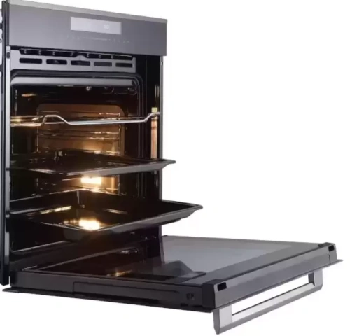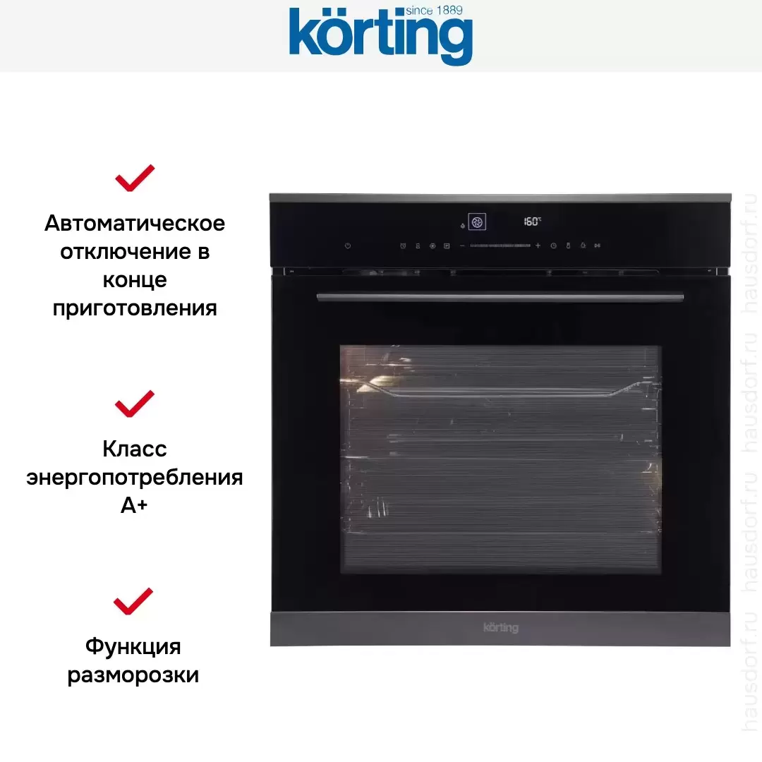 Температура приготовления регулируется в пределах от 30 до 250 градусов. Для быстрого удаления загрязнений со стенок камеры служит каталитическая очистка, на внутреннюю поверхность нанесена специальная легко очищаемая эмаль. Дверца с тройным остеклением остается холодной во время работы духовки Кортинг OKB 1331 GNBX. Безопасному использованию способствует и система охлаждения. На одном уровне имеются телескопические направляющие, позволяющие без труда извлекать из камеры горячий противень. Термощуп поможет контролировать температуру внутри готовящегося блюда. Проследить за ходом приготовления помогут две лампы галогенной подсветки. Хромированная решетка, противень для выпечки и глубокий противень входят в комплект. Модель отличается экономичностью и относится к классу энергопотребления А+.