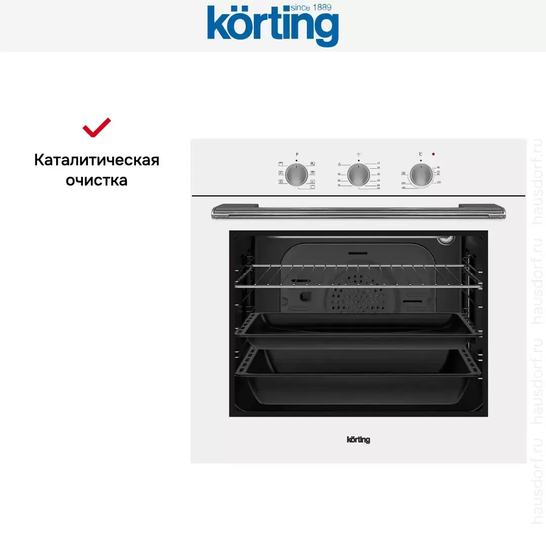 Каталитическая очистка и специальное эмалевое покрытие стенок камеры позволяют без труда справиться с любыми загрязнениями. Безопасную эксплуатация прибора обеспечивают система охлаждения и двойное остекление дверцы. Духовка Кортинг OKB 370 CMW отличается экономичностью и относится к классу энергопотребления А.
