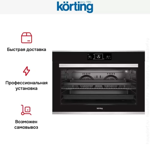 Двенадцать режимов нагрева включают конвекцию, горячий воздух, турбогриль, размораживание продуктов, верхний и нижний нагрев. Несколько режимов работы предполагают использование вертела: Большой турбогриль + Вертел, Конвекционный нагрев с грилем + Вертел, Малый турбогриль + Вертел. Духовка Кортинг OKB 7129 SGN оснащена таймером с возможностью автоматического отключения по завершении времени приготовления, а также функцией отсрочки старта. На одном уровне имеются телескопические направляющие. Панель управления можно заблокировать от детей. Система охлаждения оставляет дверцу холодной во время работы духовки.