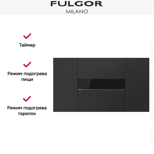 Модель Fulgor Milano FCLWD 150 BK предназначена для подогрева посуды (необходимо при подаче сложных блюд или подготовке торжества), а также обработки продуктов. Один из основных вариантов использования — прогрев тарелок, который предотвращает изменения вкуса или текстуры ресторанных порций. Также с помощью этого прибора можно поднять температуру на поверхности чашек, чтобы свежесваренный кофе полностью сохранил свои качества. Обратите внимание на функцию поддержания тепла: она пригодится, если вы готовите несколько блюд, которым требуется разное время. Чтобы ни одно из них не остыло, дожидаясь завершения всего процесса, поместите его в эту камеру. Вы можете самостоятельно регулировать температуру в зависимости от своей цели.