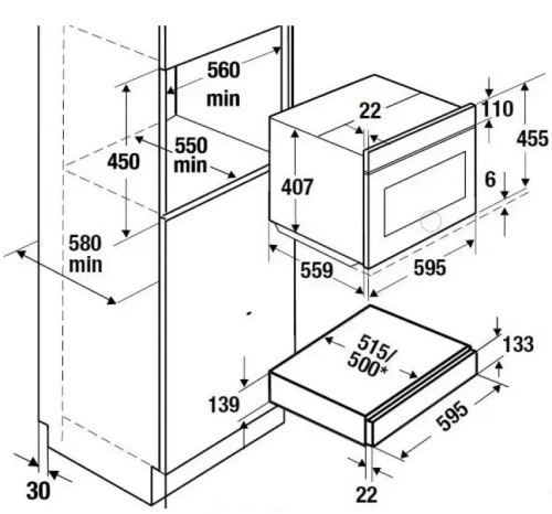 | Габариты ниши для встраивания, ВхШхГ (см) | 59.5x56х55 (включая прибор высотой 45 см) | |