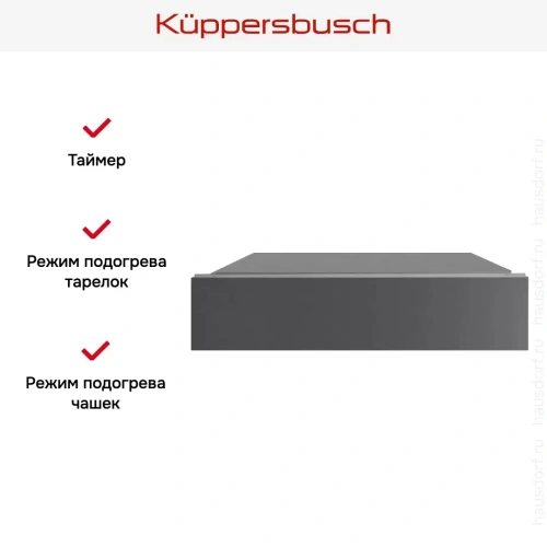 Модель Kuppersbusch CSW 6800.0 GPH предназначена для подогрева посуды (необходимо при подаче сложных блюд или подготовке торжества), а также обработки продуктов. Один из основных вариантов использования — прогрев тарелок, который предотвращает изменения вкуса или текстуры ресторанных порций. Также с помощью этого прибора можно поднять температуру на поверхности чашек, чтобы свежесваренный кофе полностью сохранил свои качества. Обратите внимание на функцию поддержания тепла: она пригодится, если вы готовите несколько блюд, которым требуется разное время. Чтобы ни одно из них не остыло, дожидаясь завершения всего процесса, поместите его в эту камеру. Вы можете самостоятельно регулировать температуру в зависимости от своей цели.