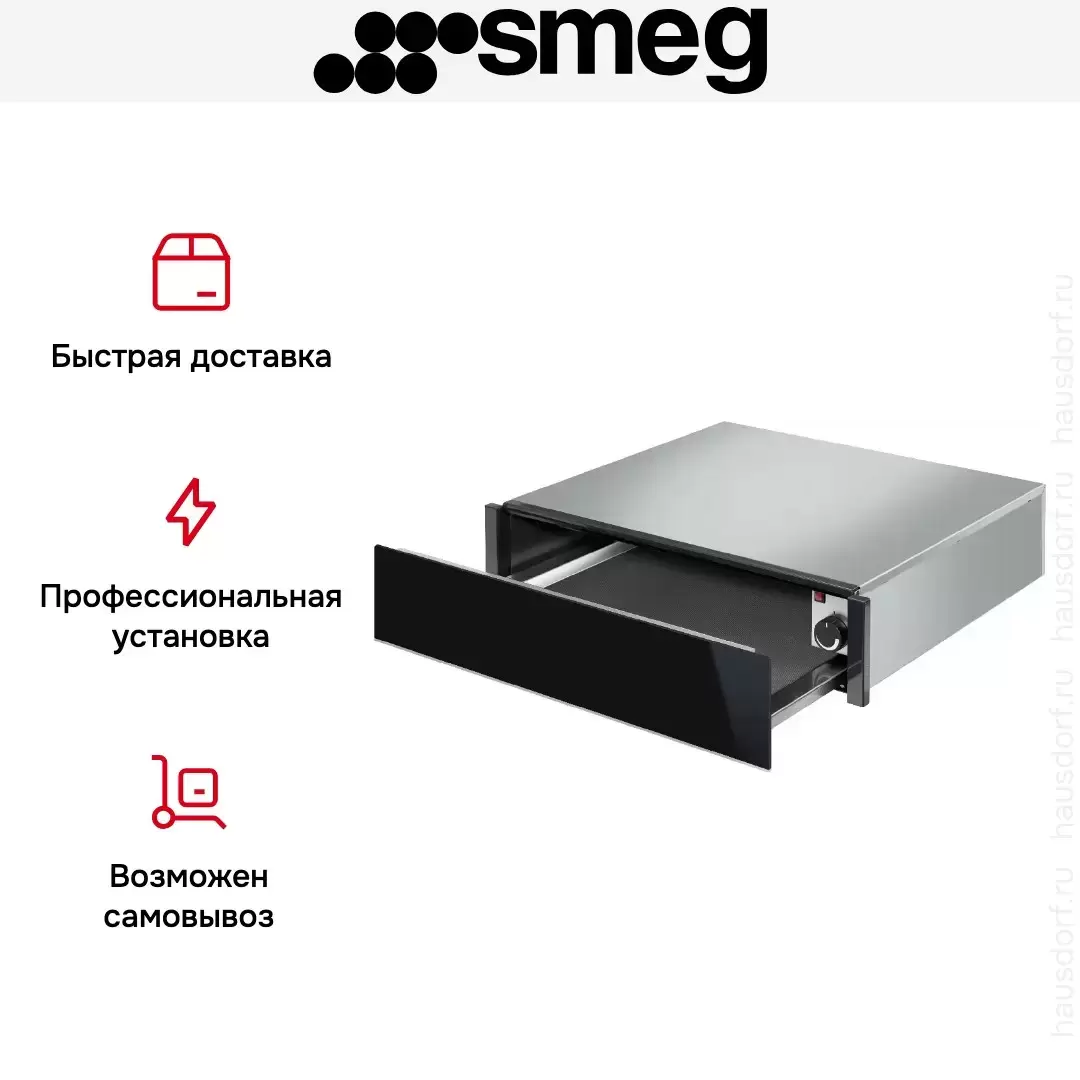 Smeg CTP6015NX — встраиваемый подогреватель посуды с черным стеклянным фронтом. Помимо своего основного назначения, модель может использоваться для поддержания блюд в теплом состоянии или же размораживания продуктов.