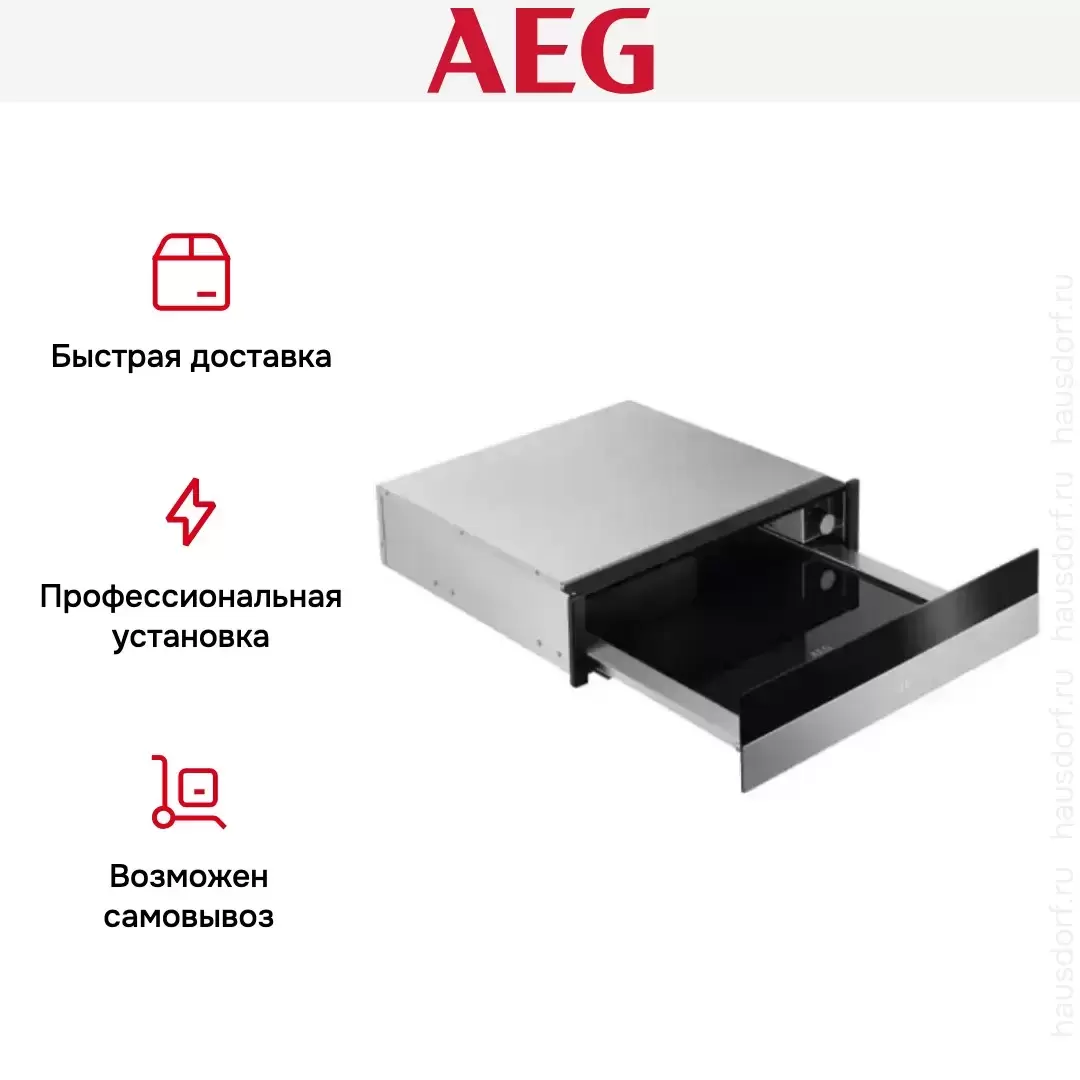 Ящик для подогрева посуды AEG KDK911424M обладает классическим дизайном, который сможет подойти к любому кухонному гарнитуру и духовому шкафу. Поддержание теплой температуры позволяет подавать блюда горячими спустя несколько часов после их приготовления. Также, если требуется разморозить продукты, то минимальная температура разогрева составляет 30 °C. Такого нагрева вполне хватит для быстрой разморозки. Покрытие Anti FingerPrint защищает поверхность прибора от жирных следов и отпечатков пальцев. Среди дополнительных преимуществ: