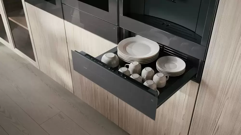 Подогреватель посуды ASKO ODW8128GG встраиваемый и компактный прибор, выполненный в стильном оформлении Elements в цвете Pearl Grey, который легко встраивается в кухонный гарнитур и почти не заметен в интерьере. Его корпус занимает 14×59.7×55 см, для встраивания потребуется ниша 14×56—56.8×55 см, а «холодный фронт» сохраняет фасад мебели защищённым от нагрева. Механизм Push упрощает открытие, а аккуратная отделка создает премиальное ощущение и органично сочетается с современной техникой.